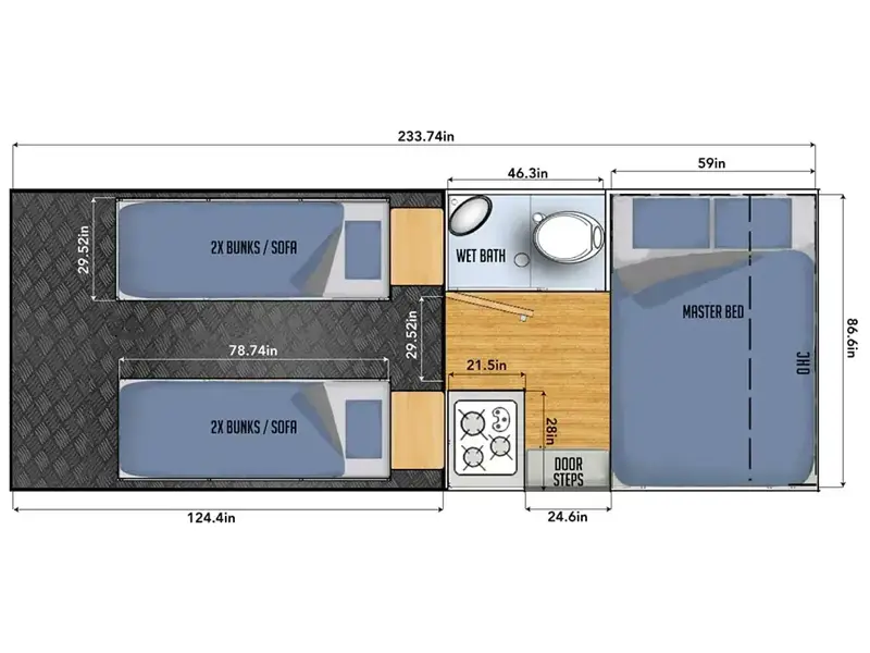 | Fresh Water Capacity | 64 gals | Grey Water Capacity | 26 gals |